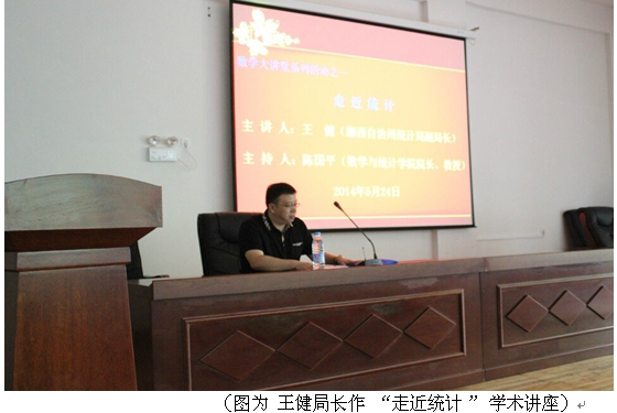王健分两方面展开“走进统计”主题。一方面以湘西州本身的宏观经济状况为出发点,结合了我国及湘西州周边地市州的经济发展现状,为师生做了一场充实丰富的湘西州最新经济数据运行情况,并对经济数据一一作出解释,挖掘出简单的数字后面殷实的经济故事。另一方面基于湘西州历年的横向纵向序列数据,用 “扩展线性支出系统在城镇居民收支分析上的运用--湘西自治州城镇居民消费潜力研究”、“我州生产总值与固定资产投资周期波动分析”、“我州农村劳动力分化转移进程及效益探析” 三个研究课题为师生分享了统计工作与统计研究相切合的思路。其间公司硕士研究生就相关湘西州宏观经济、城镇化率等相关内容请教了王局长,王局长以求实的精神做解答,赢得全场热烈的掌声。