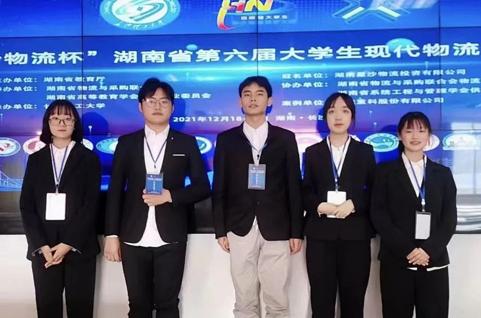 陈明新(左三)与团队参加“星沙物流杯”湖南省第六届老员工现代物流设计竞赛