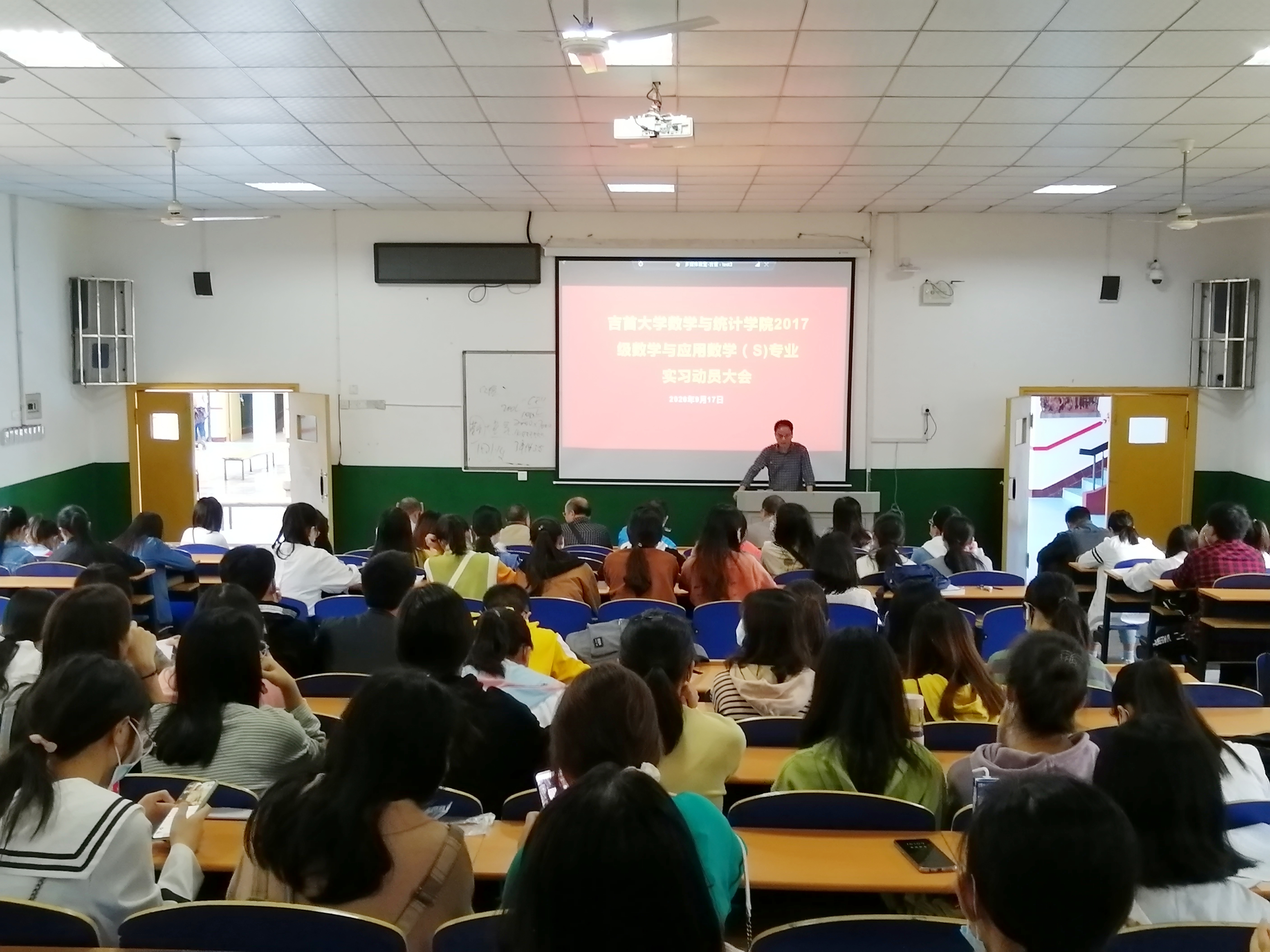 吴利华副书记对实习生进行安全教育,要求实习生既要遵守学校学院的实习规定,也要服从当地实习学校的相关安排。作为实习老师要做好角色的转换,注意言行举止,讲究职业道德。此外对员工人身及财产安全进行再次强调,在外实习要讲团结,讲互助,共同做好实习工作。钟文勇老师结合自己带队实习的经验代表实习指导老师讲话,就实习过程中与实习指导老师之间的沟通技巧,班主任工作以及实习期间需要注意的地方进行了讲解,并对实习生提出希望,遵纪、讲规、做好数统人、做好吉大人,预祝同学们取得收获,学会做人,学会教书,学会管理。