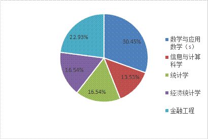伟德国际1946bv官网2017届共有本科毕业生266人。其中数学与应用数学(s)专业毕业生81人,占30.45%;信息与计算科学毕业生36人,占13.53%;统计学毕业生44人,占16.54%;经济统计学44人,占16.54%;金融工程专业毕业生61人,占22.93%;如图1.1.1所示。