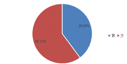 公司共有本科毕业生266人。其中男生106人,占39.84%,女生160人,占60.15%;如图1.2.1所示。
