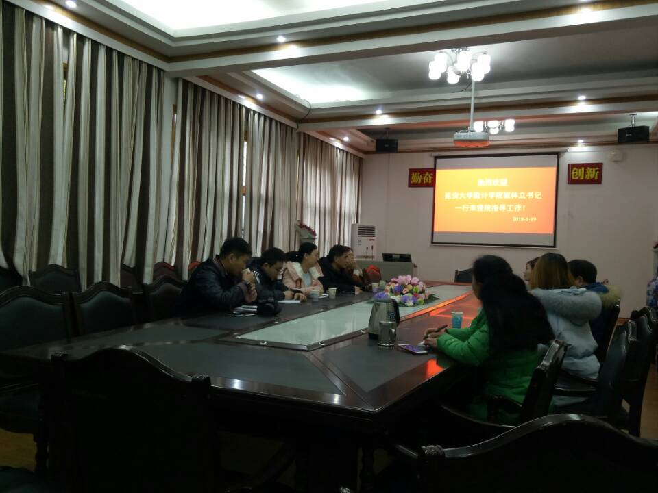 本网讯(通讯员 颜超)2018年1月19日,延安大学数计学院公司党委副书记崔林立、学工办主任高媛媛、团委书记刘瑶、党委秘书韩浩亮与学工办老师马涛一行来公司交流创新创业工作经验。公司党委副书记吴丽华、院办公室主任陈玲、创新创业工作室主任彭立平,学工办陈辉、丁玉兰热情接待了崔林立一行。