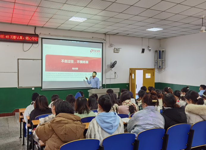 首先,彭立平老师对向炎春老师一行人表示了热烈欢迎,介绍了公司员工的基本情况,希望通过此次讲座,加强校企双方合作,强化人才培养,实现双赢。接着向炎春老师从“理论联系实际,做好职业规划,越努力越幸运”三个方面展开讲座,让各位同学对未来的职业规划更加清晰的认识。向老师从金融知识分析展开,引用了三个具体实例,对股市曲线进行了分析,向同学们介绍了将理论联系实际的方法。同时从空杯心态、同理心几个故事向同学们介绍了在未来工作生活当中的方法论。