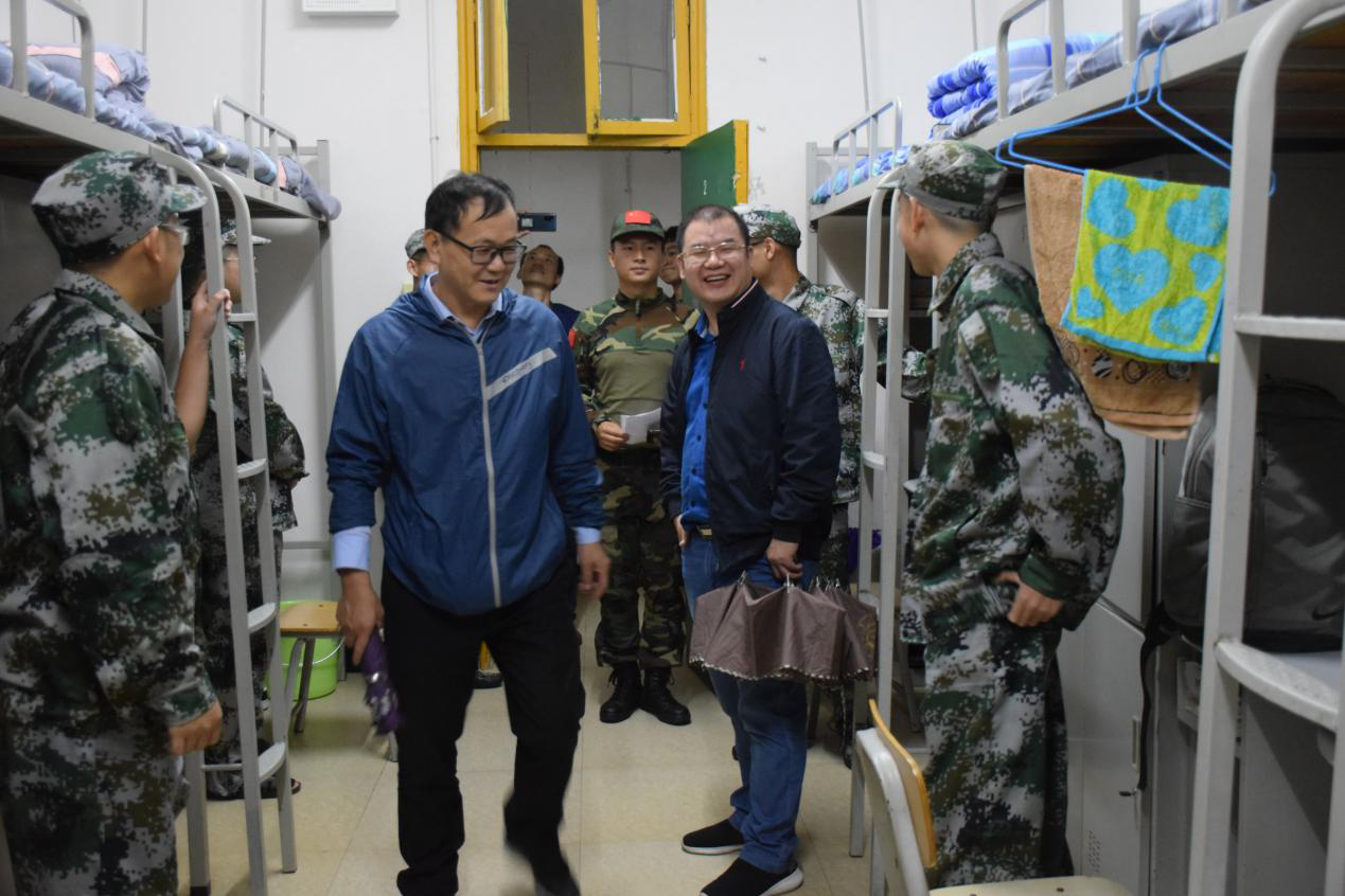 本网讯(通讯员 严社燕)随着迎新工作的完美落幕,公司20级本科生全部顺利报到。为了解公司新生寝室入住情况,提高新生安全意识,推进军训工作的顺利开展,我公司党委书记戴军、经理方东辉、副经理莫宏敏、欧祖军、党委副书记吴利华、经理助理陈望学,新生辅导员彭立平以及20级新生班主任于9月20日晚下寝探望20级新生。