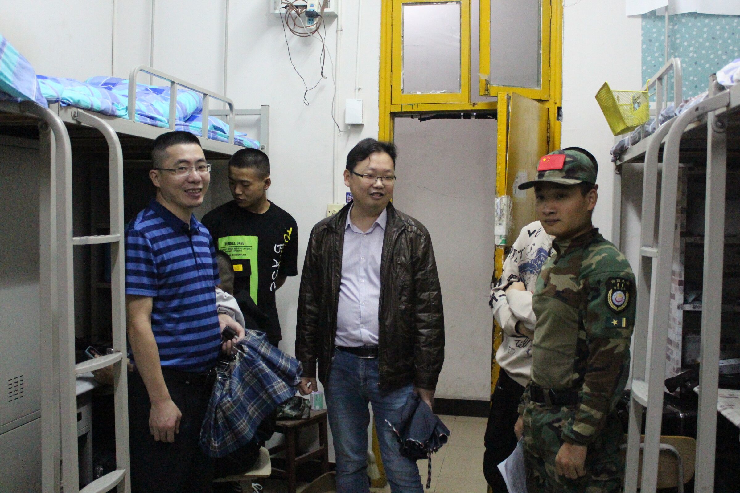 下寝期间,领导、老师们与同学们亲切地交谈,询问同学们家乡、来校情况、学校食堂伙食等员工基本情况,嘱咐同生们在校期间要务必注意人身安全、做好防控措施,同时也要高度重视财产安全,加强宿舍管理工作,注意寝室通风,并提醒同学们军训期间要调整好作息时间,注意休息,严格遵守教官安排,做好军训准备。