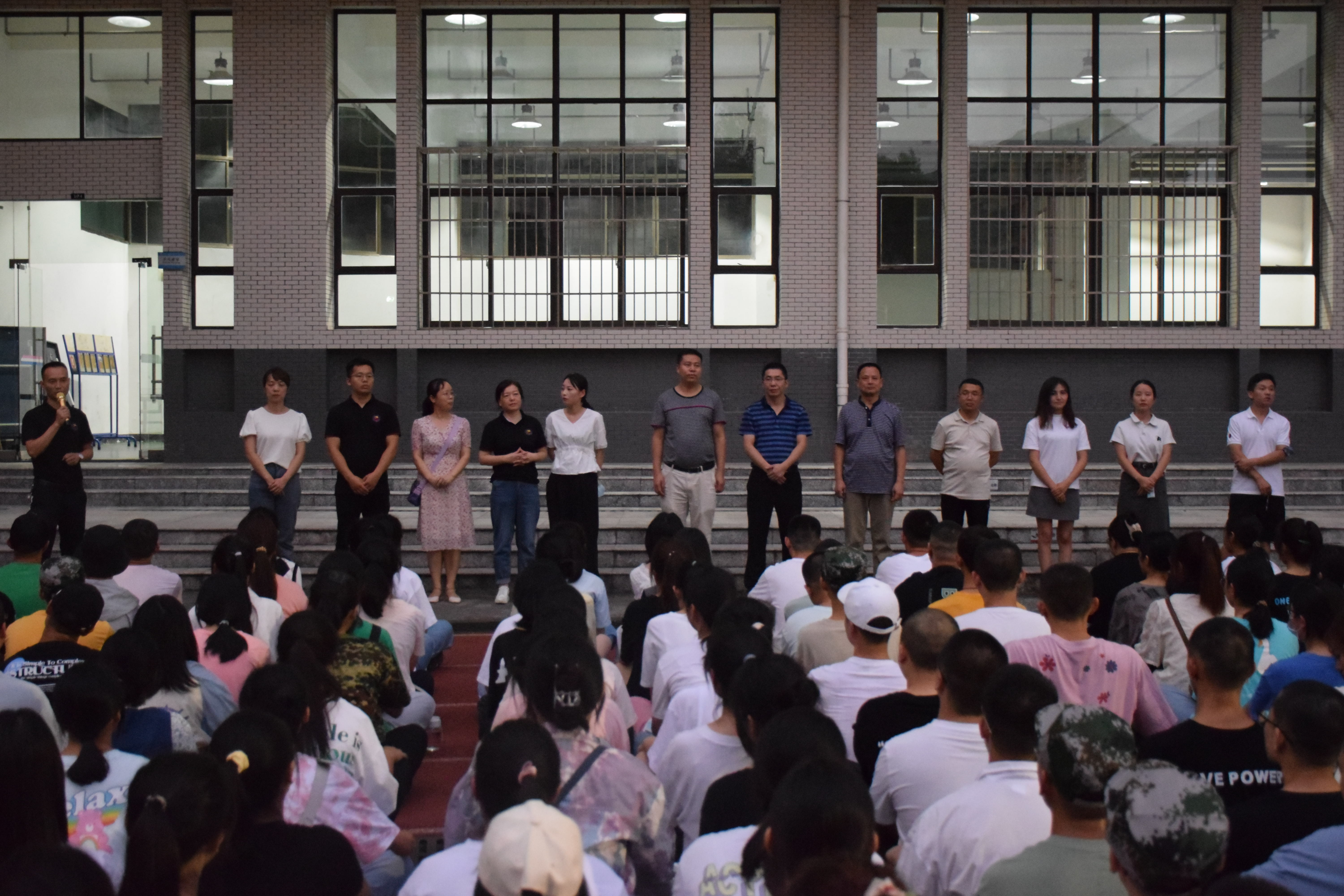 当晚19:00在大田湾田径场举行了新生见面会,学工办主任彭立平老师介绍了参加见面会的院领导、班主任及军训教练员。