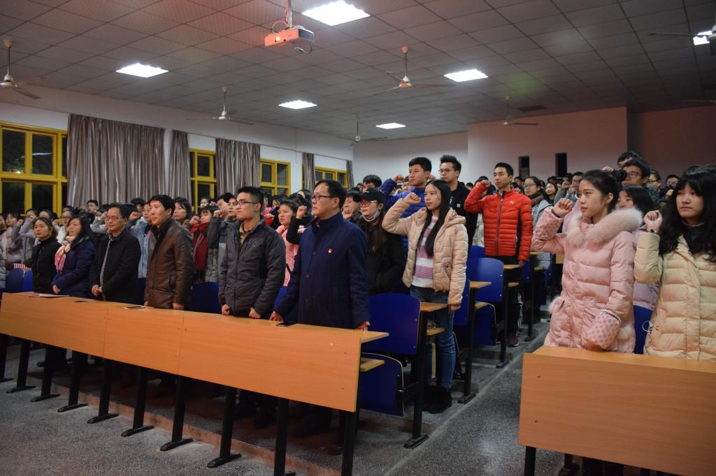 最后由公司15信计班王海波、16级金工班莫恬芳同学分别带领15、16级全体参会人员进行宣誓。此次动员大会,引起了同学们对四六级考试的重视,更激发了同学们的斗志。希望同学们积极备考,诚信考试,从我做起。