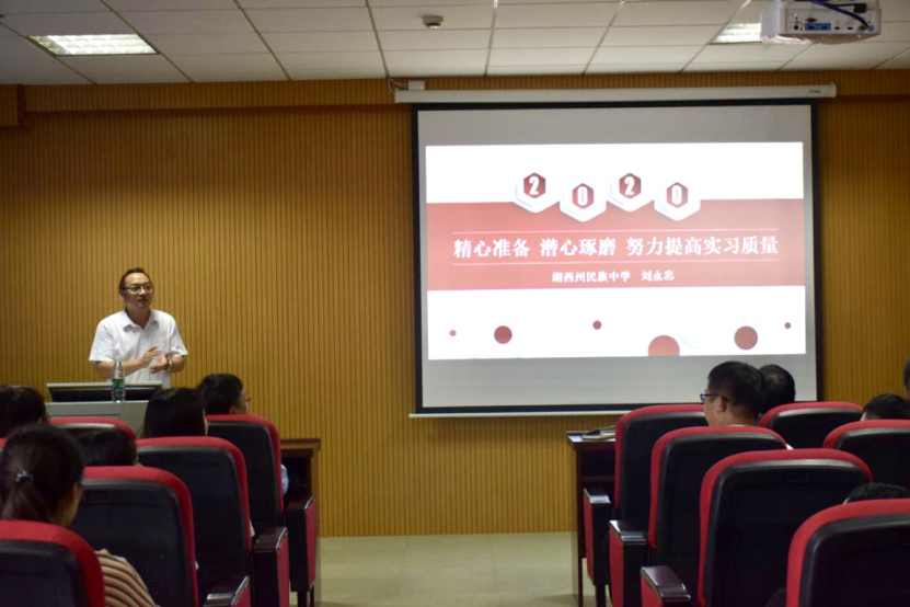 本网讯(通讯员 王美琦)为确保2017级数学与应用数学师范专业实习工作的顺利开展,2020年9月12日公司特别邀请到湘西自治州民族中学刘永忠老师,于总理楼六楼学术报告厅进行题为“精心准备、潜心琢磨、努力提高实习质量”的讲座。经理方东辉、老师陈国平、钟文勇、谢景力、戴厚平、杨乔顺及2017级全体数学与应用数学师范专业员工聆听本次讲座。本次讲座由谢景力老师主持。