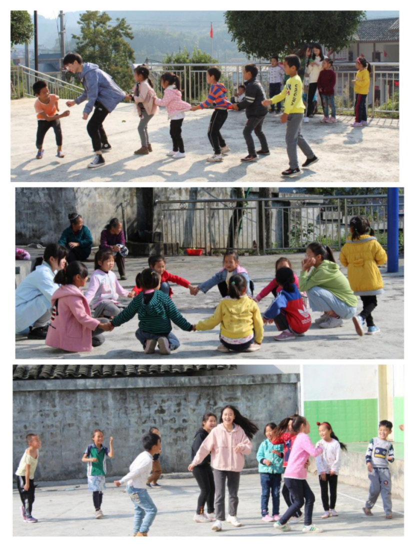 图组为志愿者与孩子们在课余时间玩游戏。