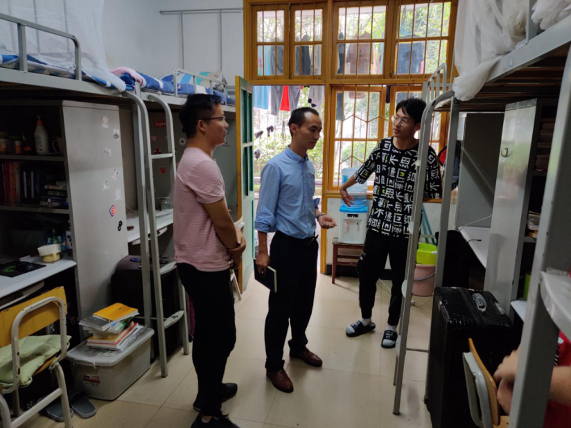 下寝过程中院领导老师着重强调了疫情防控、寝室等各类安全事宜。吴书记亲切的和员工交流,叮嘱员工保持寝室通风,注意饮水安全等等,每一条每一项都细致入微,从生活细微处向同学们宣传安全知识,提高员工安全意识。