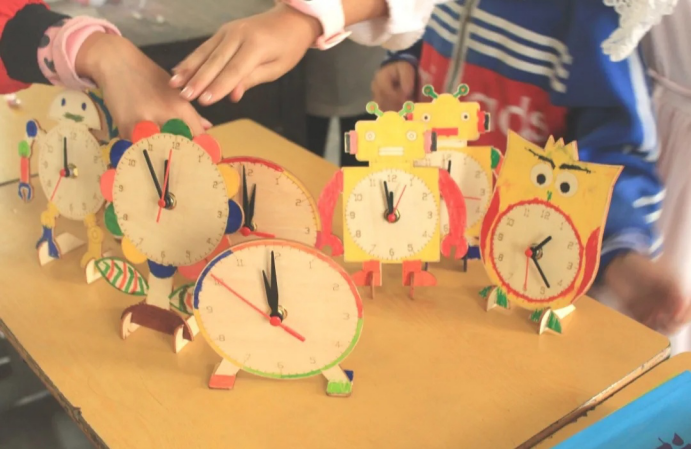面对活泼可爱的孩子们,志愿者通过讲解、指导、互动相结合的方式与小朋友们沟通,拉近了与小朋友们的距离。志愿者们采用“图音结合”的方式,从原始地图谈到近现代“雄鸡式”地图,回顾中国历史,讲述中国的发展,告诉小朋友们当前幸福的来之不易,要学会感恩,坚定孩子们的爱国之心;用孩子们能够理解的语言讲述剪纸的历史,让小朋友们感受剪纸的魅力,在小小的剪纸上剪出他们的内心世界,放飞他们的梦想;通过课堂讲解、手工制作、与时钟合影等多样的互动形式,激发孩子们的动手能力,指引孩子们时间观念的初步建立。