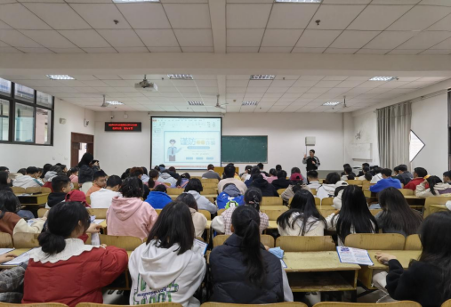 大会伊始,由法学与公共管理学院防诈骗宣传员做宣传。他首先结合以往被诈骗员工的实际案例,向大家生动展示了网络诈骗的手法,并以互动的形式给同学们提出了遇到诈骗时的解决方案。接着,由砂子坳派出所民警做防诈骗宣传,对网络诈骗的三类手法进行了详细讲解,并为同学们提供了八种防诈骗辨别方法。
